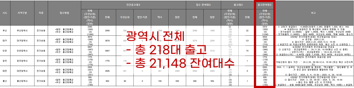 현재까지 소진된 광역시 전체 전기차는 218대로 집계가 되고 있습니다.
