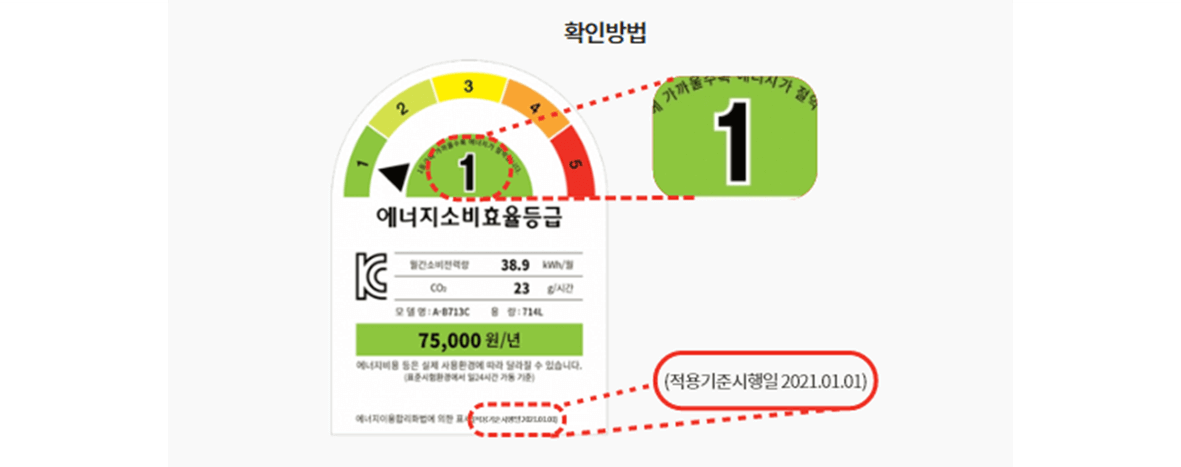 고효율 가전에 대한 지원을 하는 사업이기 때문에 1등급 에너지효율을 만족시켜야 합니다.