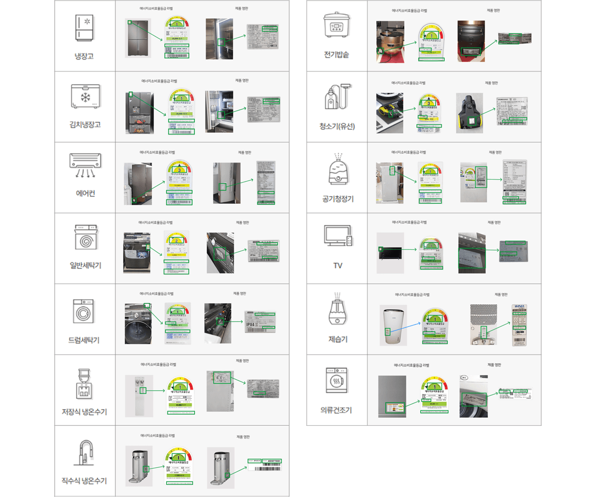 우리가 주로 알고 있는 에너지소비효율등급이라는 스티커가 있습니다.