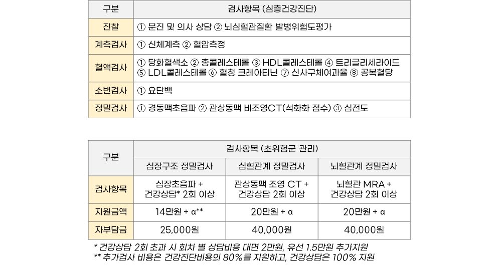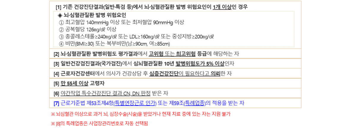 건강검진을 통해서는 주로 고혈압 또는 당뇨 정도의 진단만 할 수 있는데, 건강지원금 통해 뇌심혈관 관련 질환 또한 확인할 수 있다고 합니다.