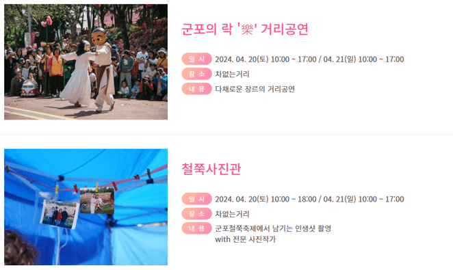 군포문화재단에서 주관을 하고 있으며, 4월 20일부터 개최합니다.
