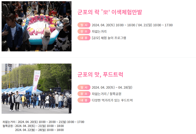 군포의 멋, 군포의 맛, 군포의 락(樂)의 다채로운 프로그램들로 구성이 되어 있습니다.