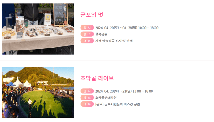 이번 글 통해 군포에서 진행하는 철쭉축제 관련 안내 드렸습니다.
