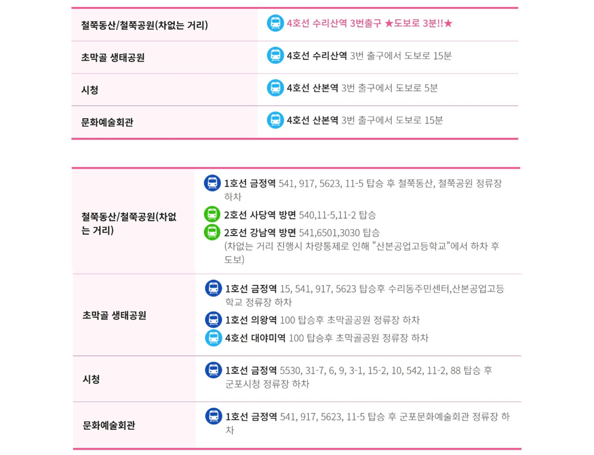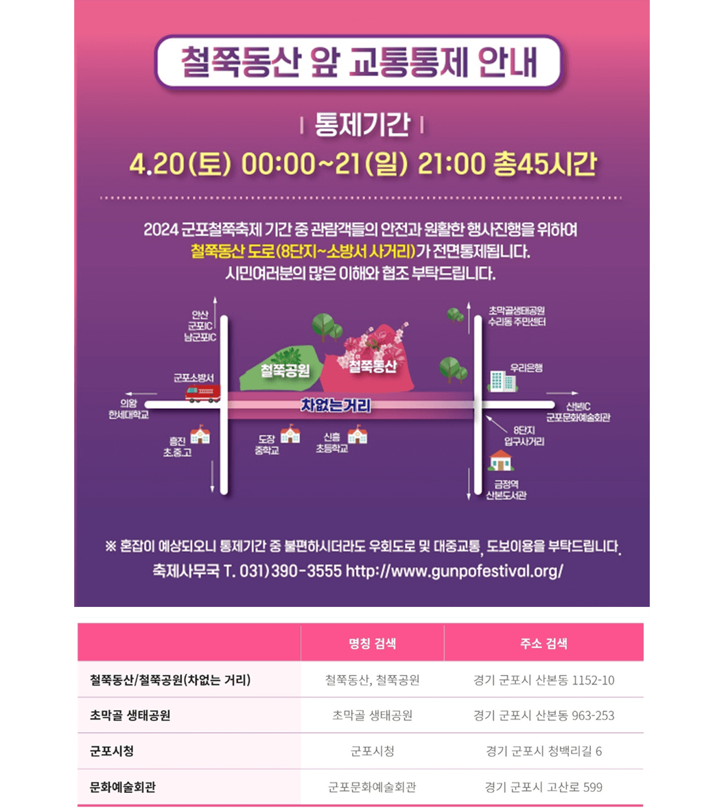 군포 철쭉 축제 오는 길 관련 안내 드립니다.
