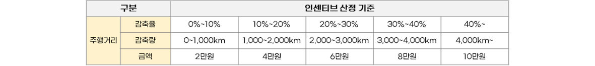 최대 10만원 받는 기준은 4천 이상 주행거리가 줄어든 경우 해당이 됩니다.